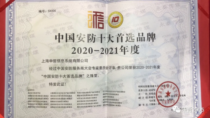 獲得十大品牌殊榮的企業,是市場、用戶對該企業的認可和肯定。上海申哲信息系統有限公司已深入安防領域已經15年了,憑借優質的產品和服務、技術創 新,獲得良好的市場口碑和品牌影響力,再次斬獲“中國安防十大**品牌”。